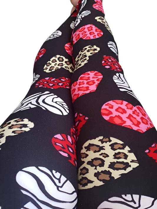 SoSoft - Regular Waist - Leopard Zebra Hearts - Full Length Leggings