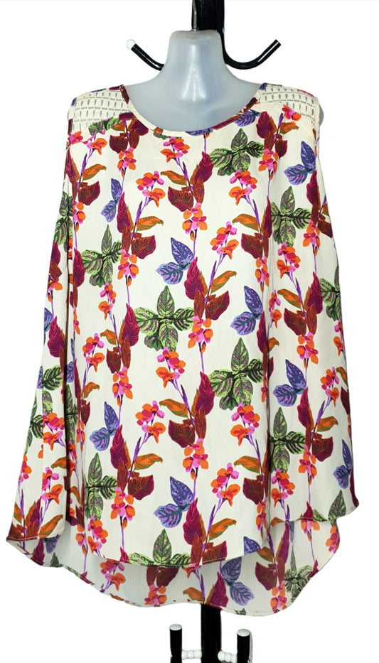City Chic Large - Beige Floral Cut-Out Shoulder Tank Top