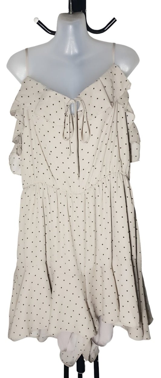 City Chic Large - Beige Polka Dot Frill Playsuit