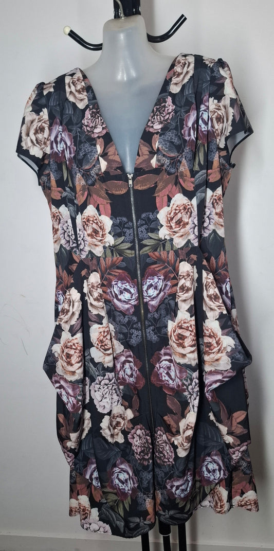 City Chic XS - Floral Zip Tunic Dress With Pockets