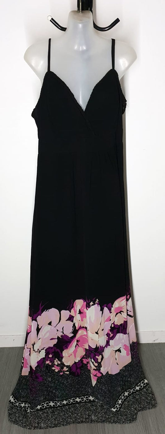 City Chic Large - Black Pleated Tiered Frill Strapless Dress With Flowers