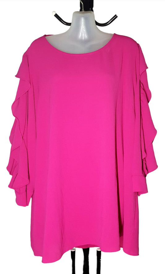 City Chic XL - Pink Frill Sleeve Top - Brand New With Tags