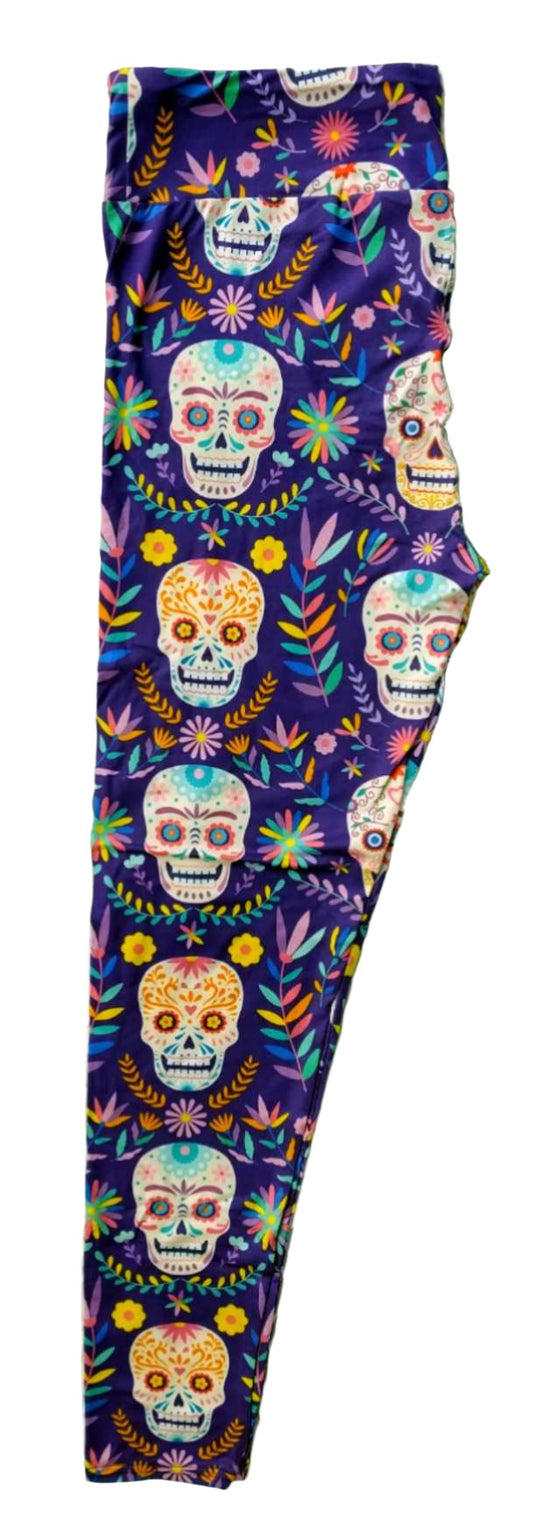 Deluxe - Purple Sugar Skull - Full Length Leggings