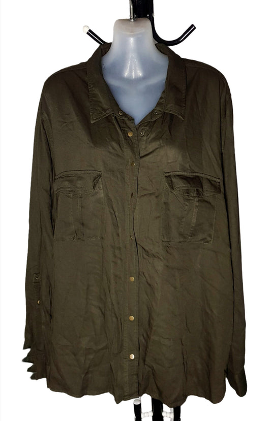 City Chic Large - Button Up Utility Top With Pockets And Cuffed Sleeves