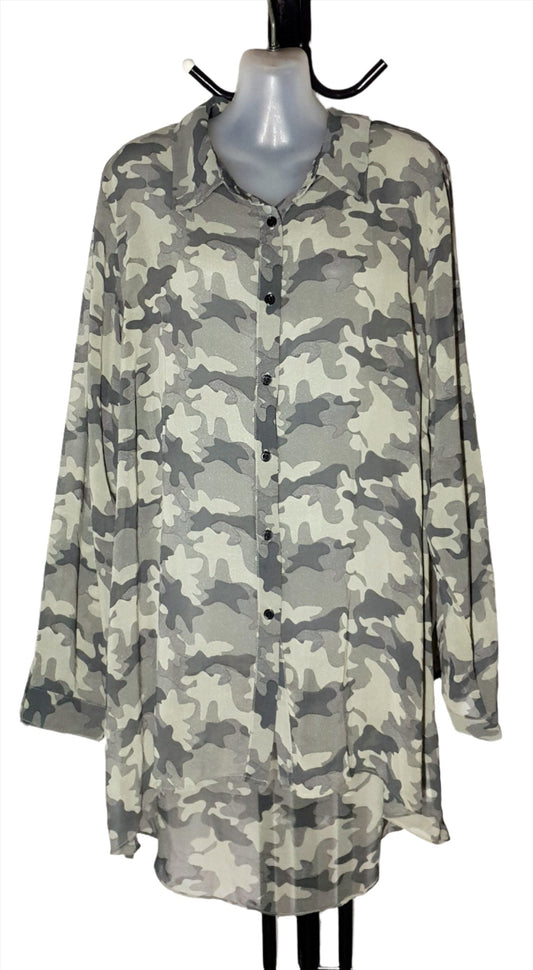 City Chic Large - Sheer Camo Sleeved Button Up Hi Lo Blouse Top