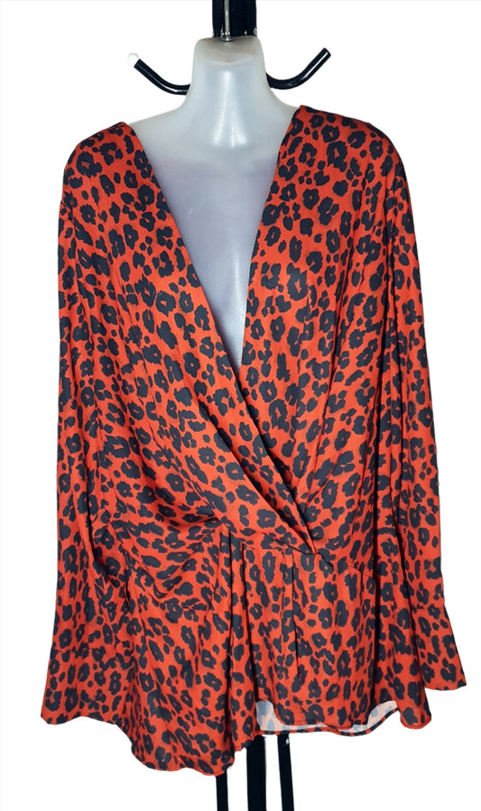City Chic Large - Red Leopard Print Sleeved Knot Front Top