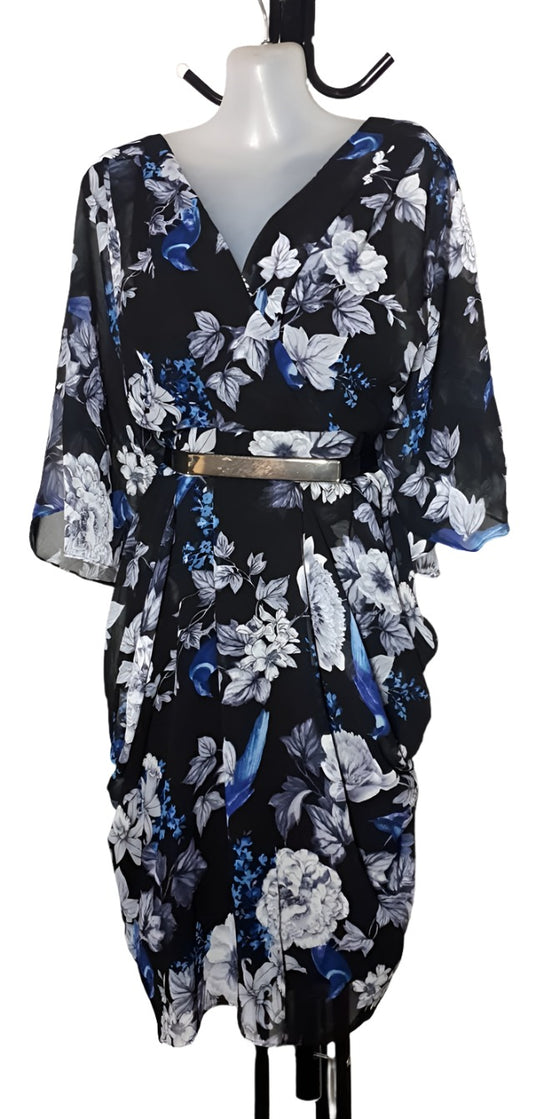 City Chic Large - Floral Faux Chiffon Wrap Dress With Belt - Brand New With Tags
