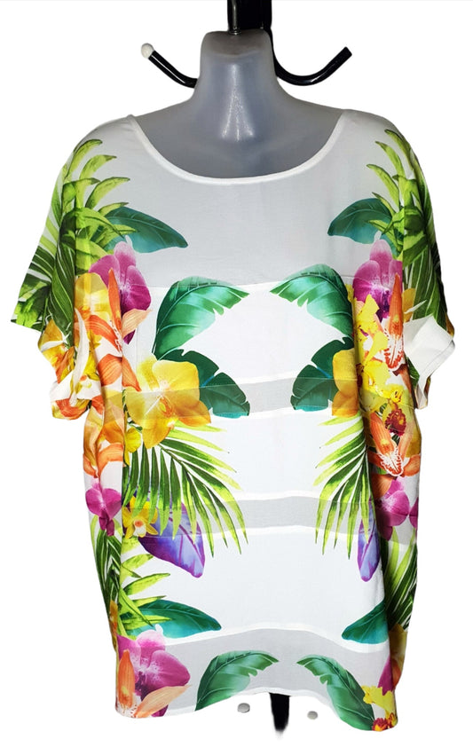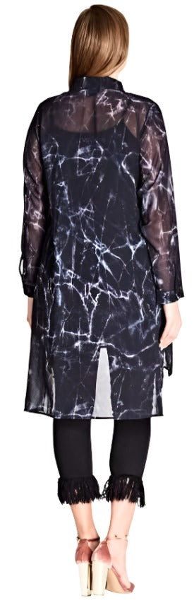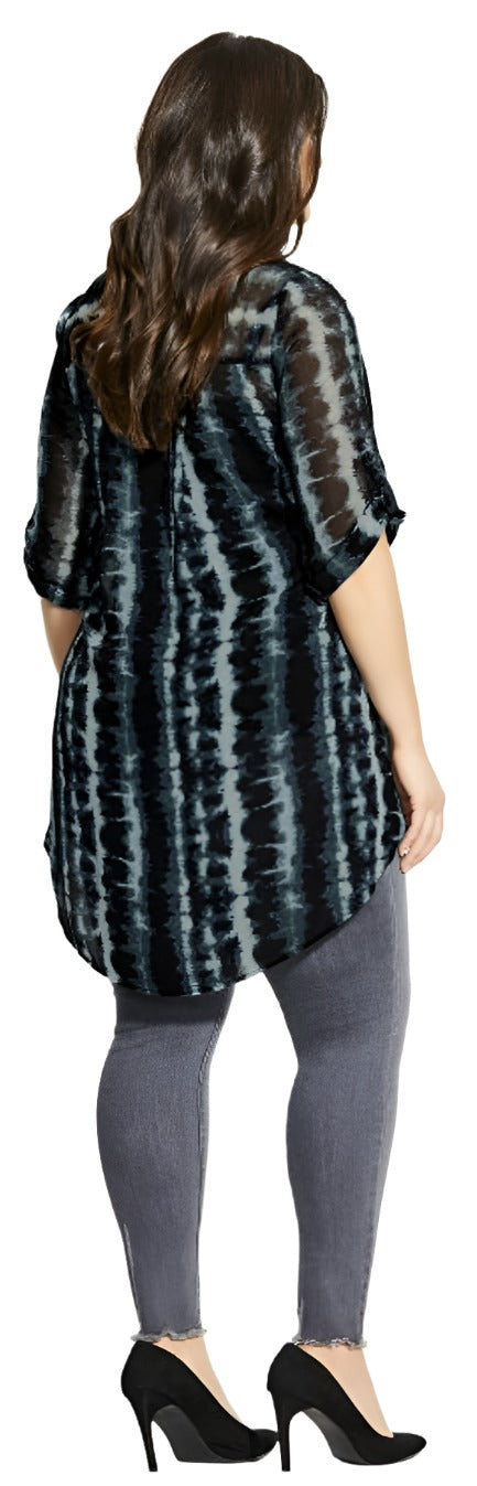 City Chic Medium - Sheer Lightning Tie Dye Hi Lo Button Up Sleeved Tunic Top