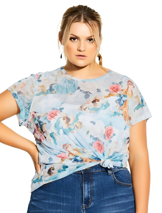 City Chic Medium - Sheer Blue Heaven Angel Rose Top