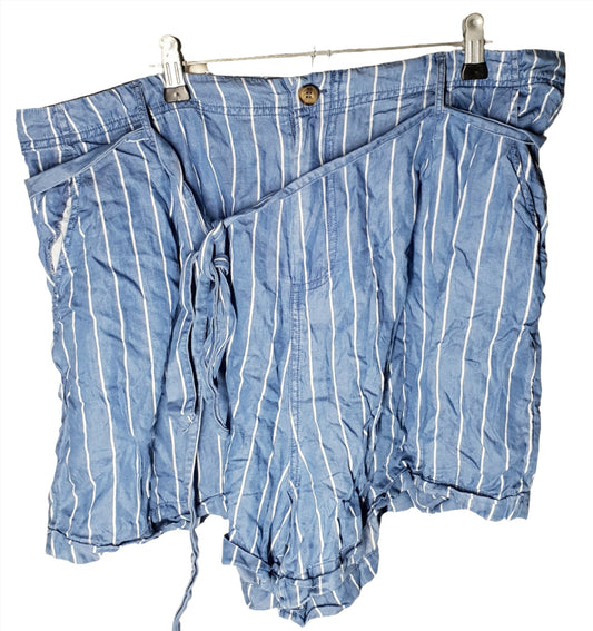 City Chic Medium - Striped Button Up Shorts With Tie And Pockets