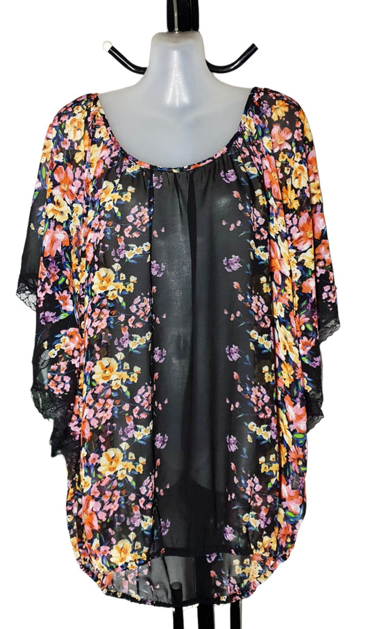 City Chic Medium - Black Sheer Button Up Hi Lo Blouse Tunic Top
