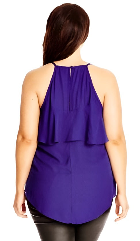 City Chic Medium - Purple Frill Detail Halter Neck Top