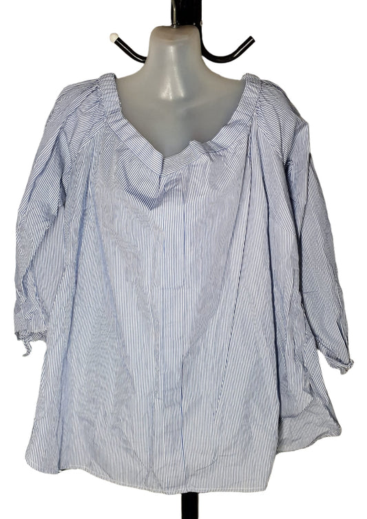 City Chic Medium - Pinstripe Off Shoulder Sleeved Top