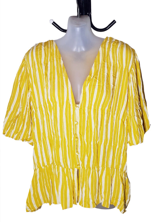 City Chic Medium - Striped Cropped Peplum Top With Bubble Sleeves