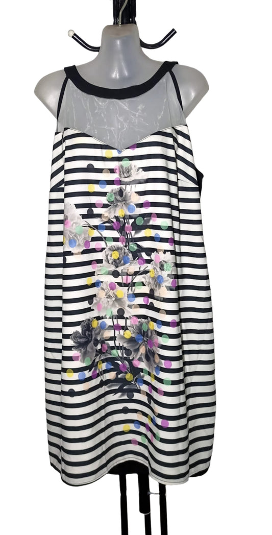 City Chic Medium - Striped Floral Mesh Panel Halter Dress