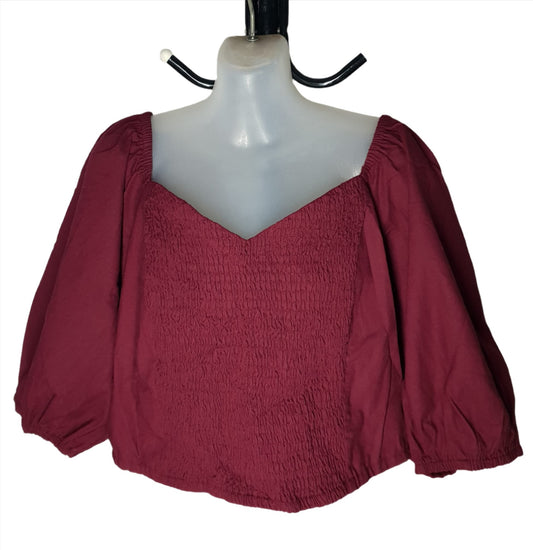 City Chic Medium - Burgundy Bubble Sleeve Ruched Crop Top - Brand New With Tags