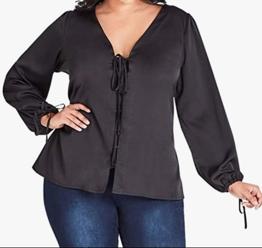 City Chic Medium - Bronze Long Sleeved Tie Up Top