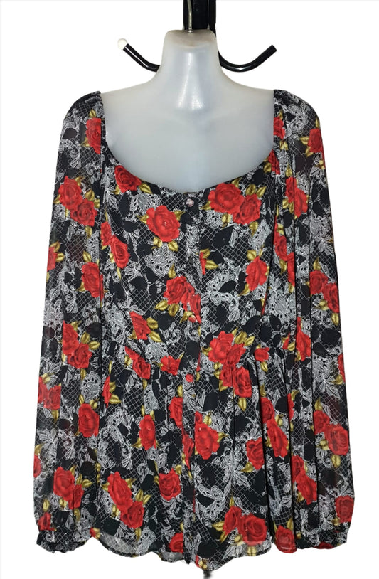 City Chic Medium - Floral Chiffon Sleeved Top
