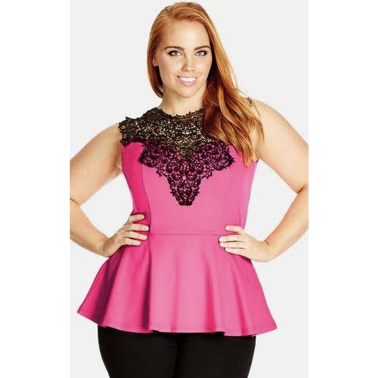 City Chic Medium - Yellow With Black lace Peplum Top