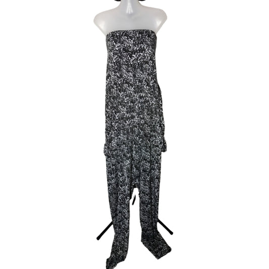 City Chic Medium - Stretchy Black And White Strapless Jumpsuit With Pockets - No Belt