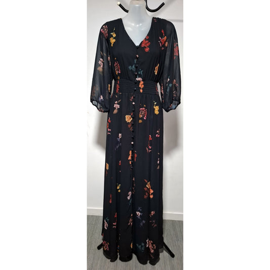 City Chic Medium - Black Floral Button Down Maxi Dress With Sleeves