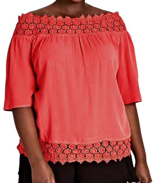 City Chic Small - Black Lace Off Shoulder Top