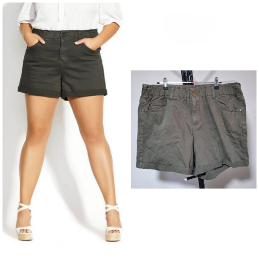 City Chic Small - Khaki Shorts With Pockets & Elastic Waist