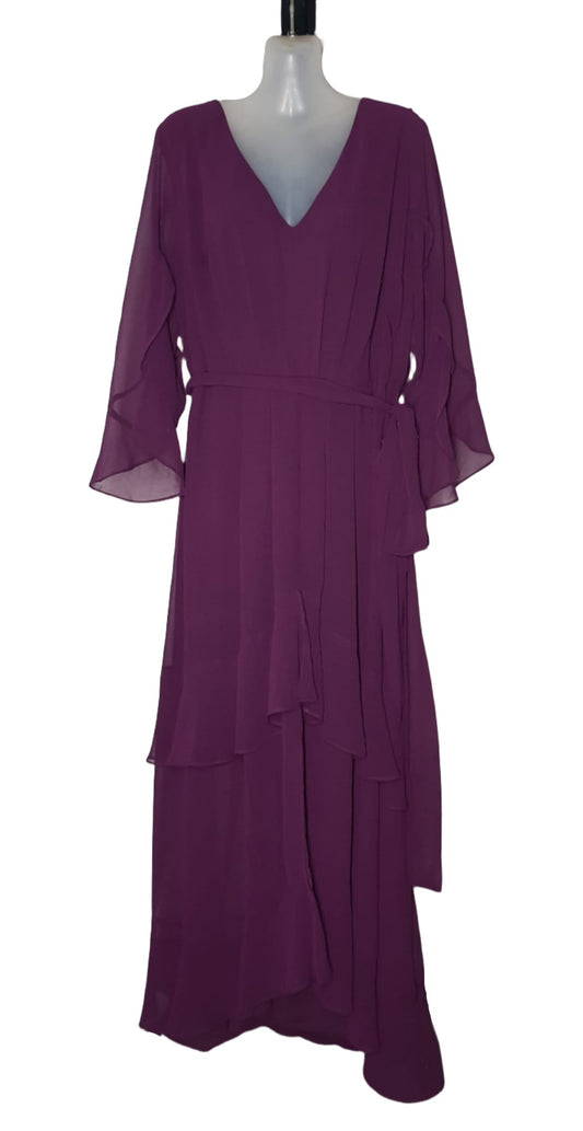 City Chic Small - Purple Chiffon Maxi Dress With Tie