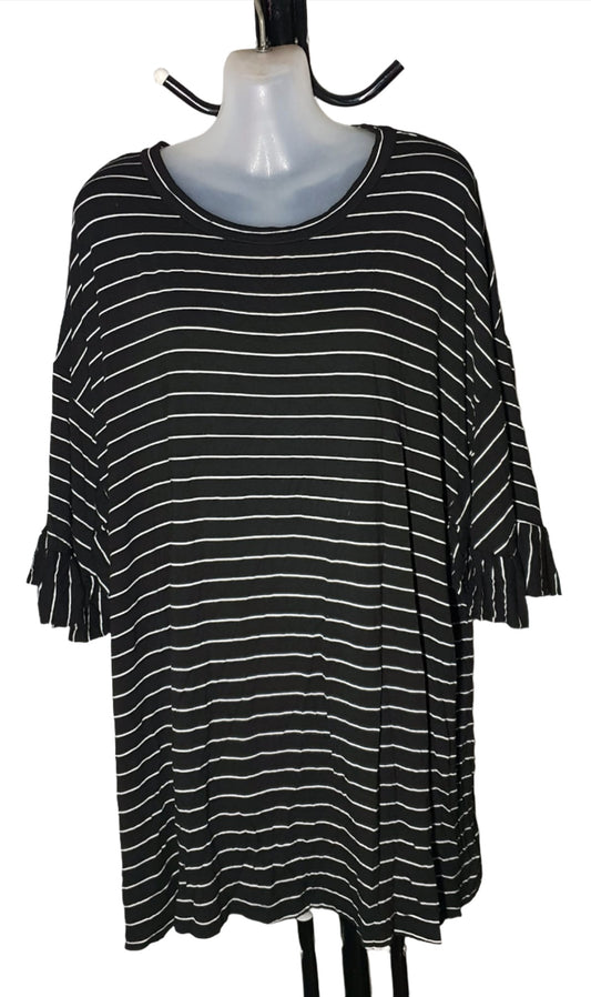 City Chic XL - Black And White Striped Frill Sleeve Top