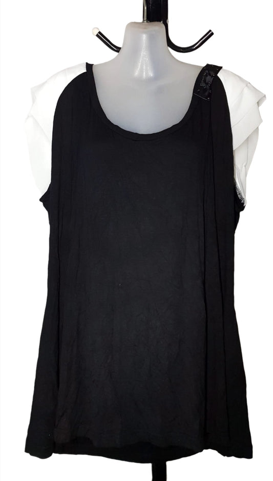 City Chic XL - Black And White Stretchy Top With Bow - Brand New With Tags