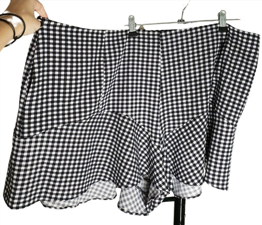 City Chic XL - Black And White Tartan Frill Shorts With Pockets