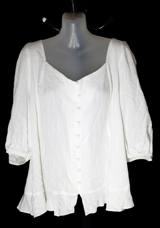 City Chic XL - White Elastic Bubble Sleeve Button Top