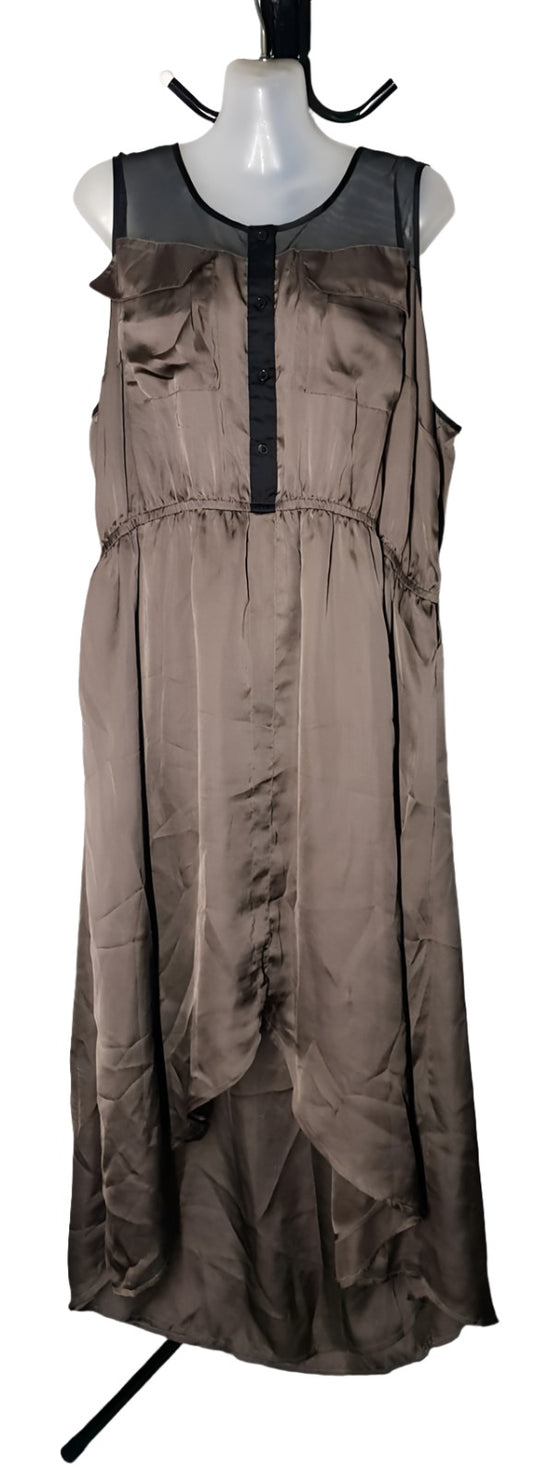 City Chic XL - Champagne Hi Lo Dress With Mesh Panel And Pockets