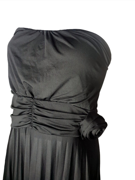 City Chic XL - Black Strapless Pleated Maxi Dress With Rose - Brand New With Tags.jpg