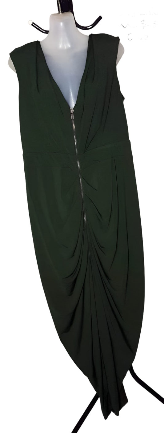 City Chic XXL - Olive Stretchy Zip Up Ruched Dress