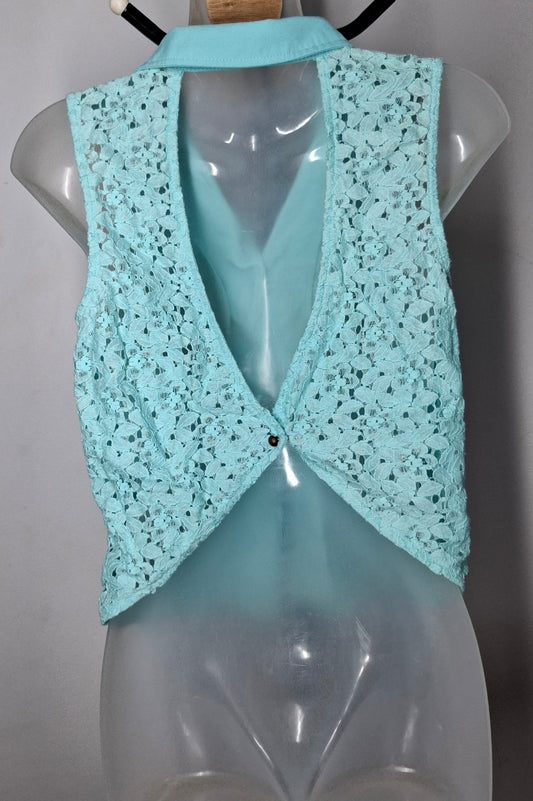 Size 10 - Stretchy Pink Lace Animal Print Crop Top