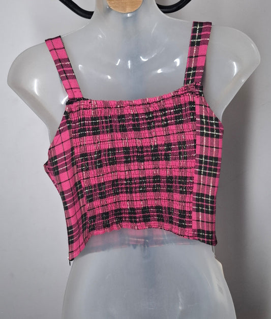 Size 10 - Pink & Black Plaid Lace Up Buckle Crop Top - Brand New With Tags