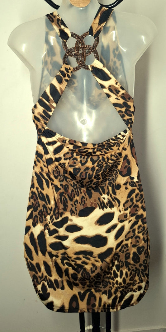 Size 10 - Soft Stretchy Sheer Animal Print Dress - Brand New With Tags