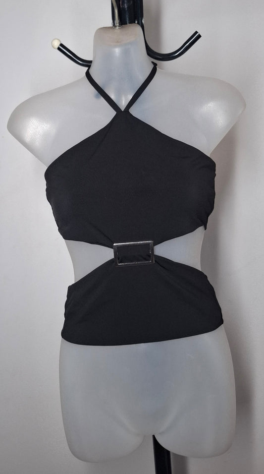 Size 10 - BLACK Buckle Halter Top - Brand New With Tags