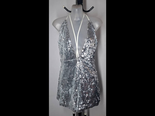 Size 14 - Pretty Little Thing Silver Sequin Strappy Playsuit