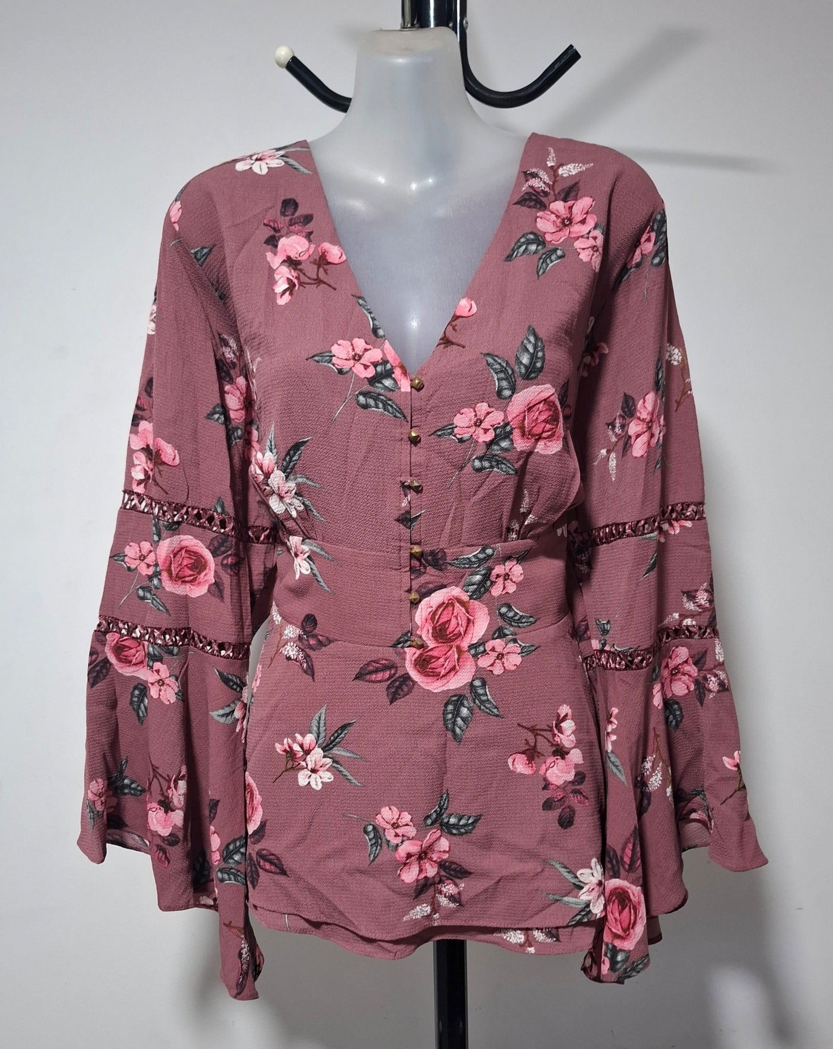 City Chic Medium - Floral Bell Sleeve Peplum Top
