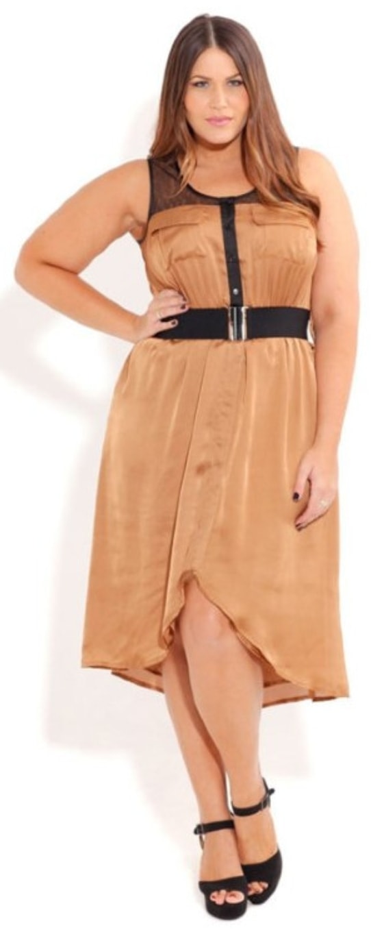 City Chic XL - Champagne Hi Lo Dress With Mesh Panel And Pockets