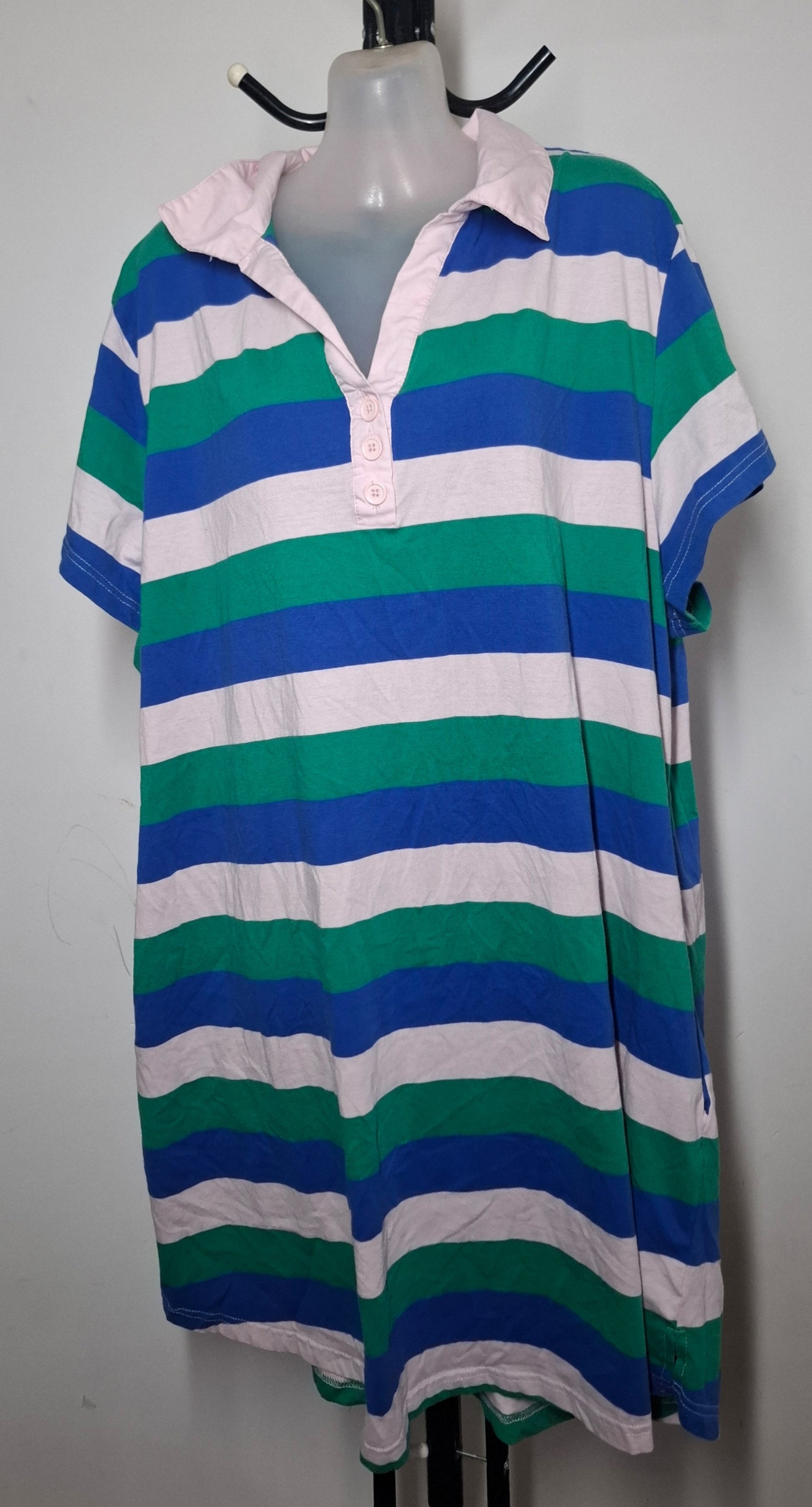 Size 22 - Blue Green White Stretchy T-Shirt Dress
